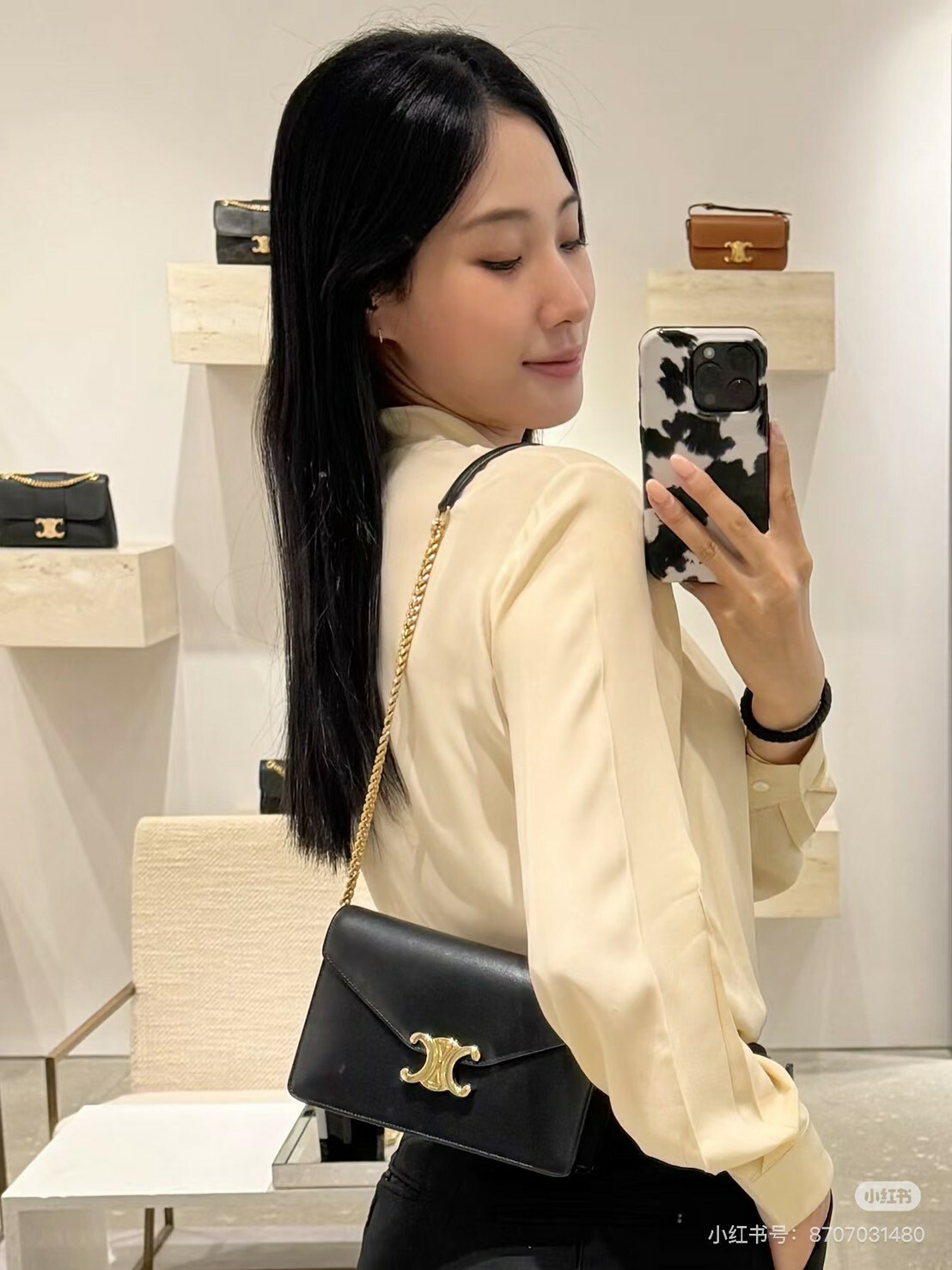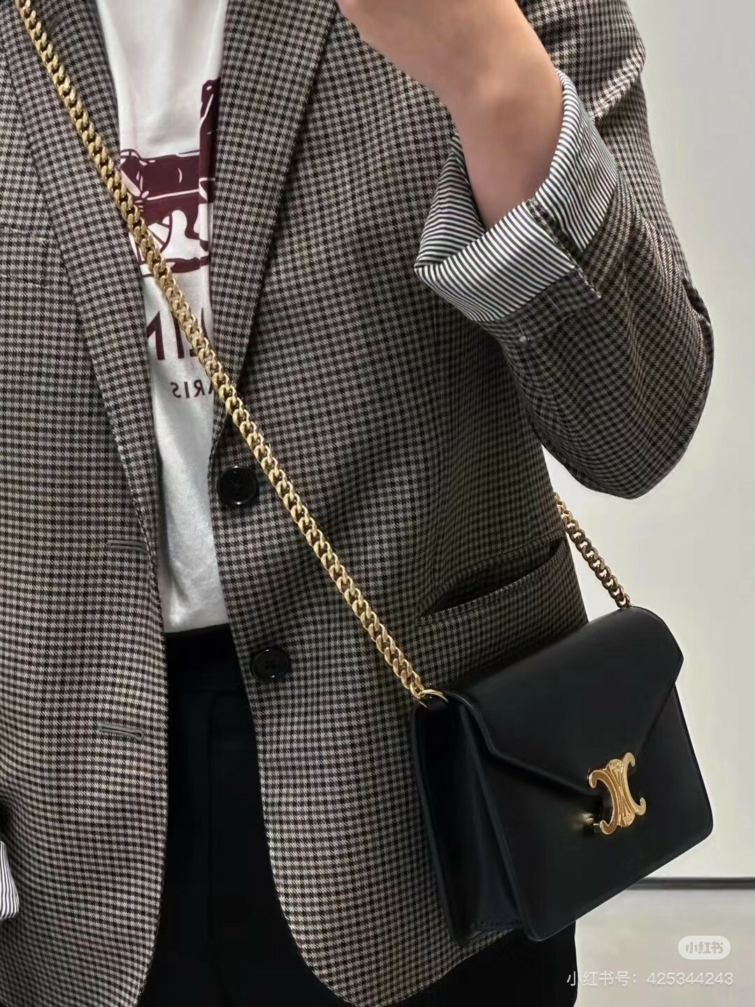 CELINE|MARGO亮澤牛皮革飾鍊錢包 WOC