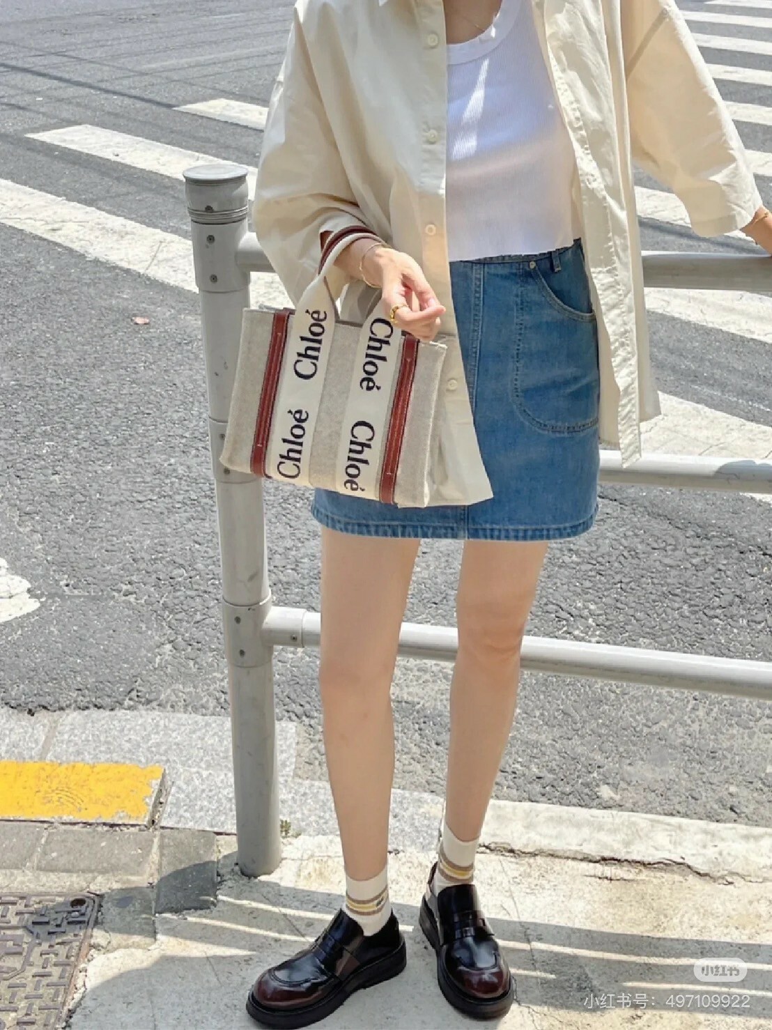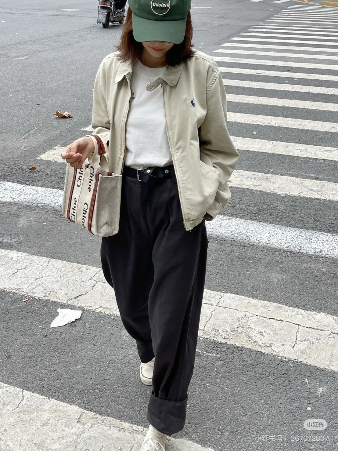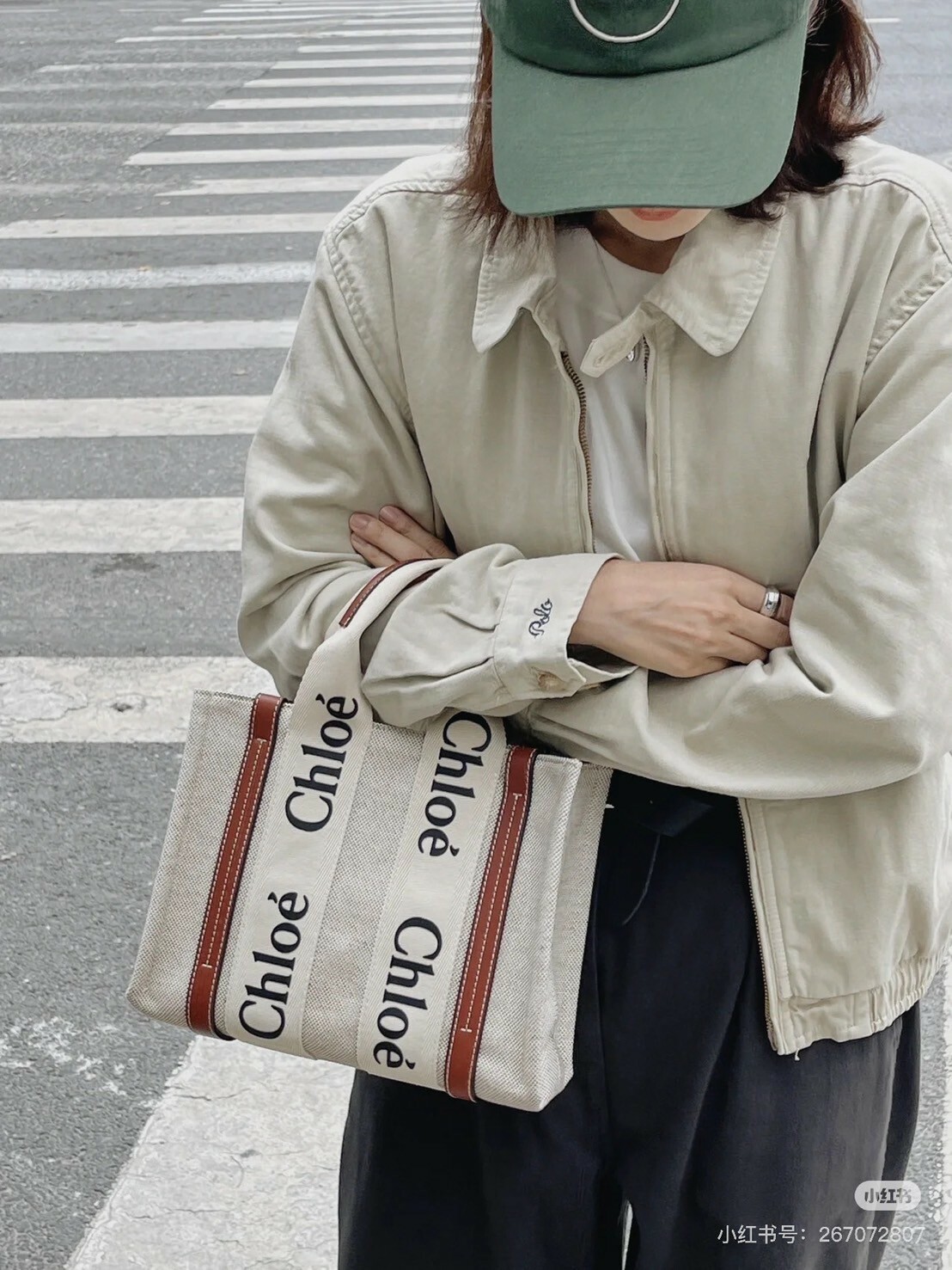 棕色皮革飾邊搭配米色帆布