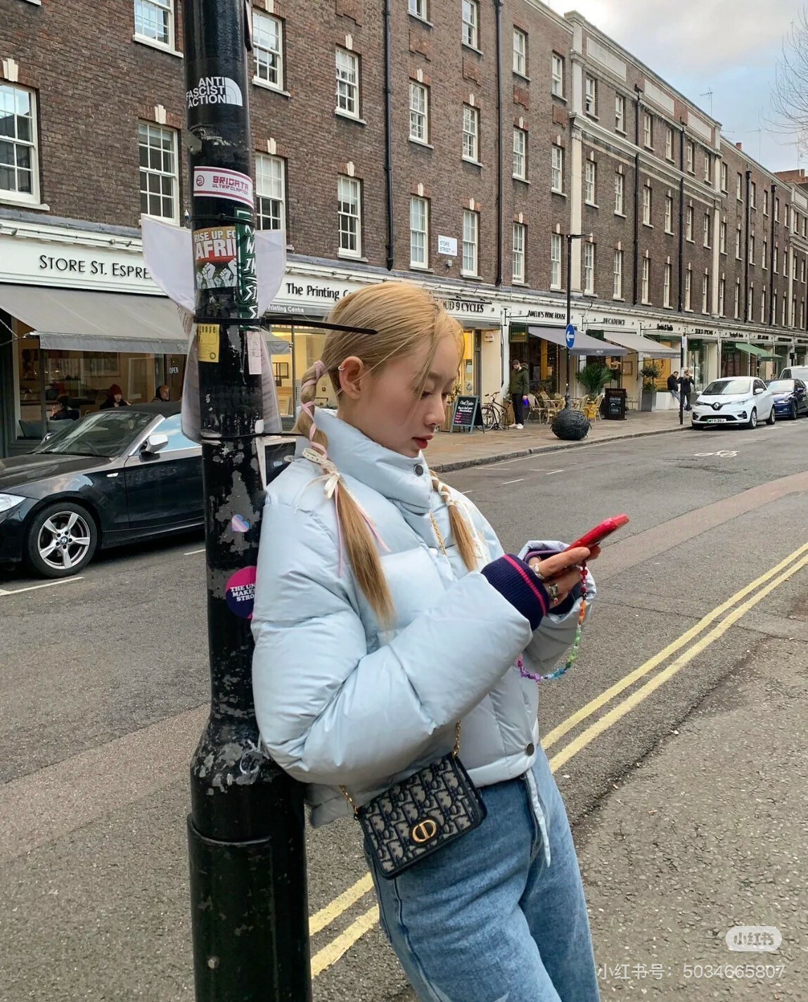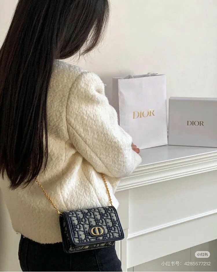 DIOR|蒙田 NANO 鏈條包 藍色老花