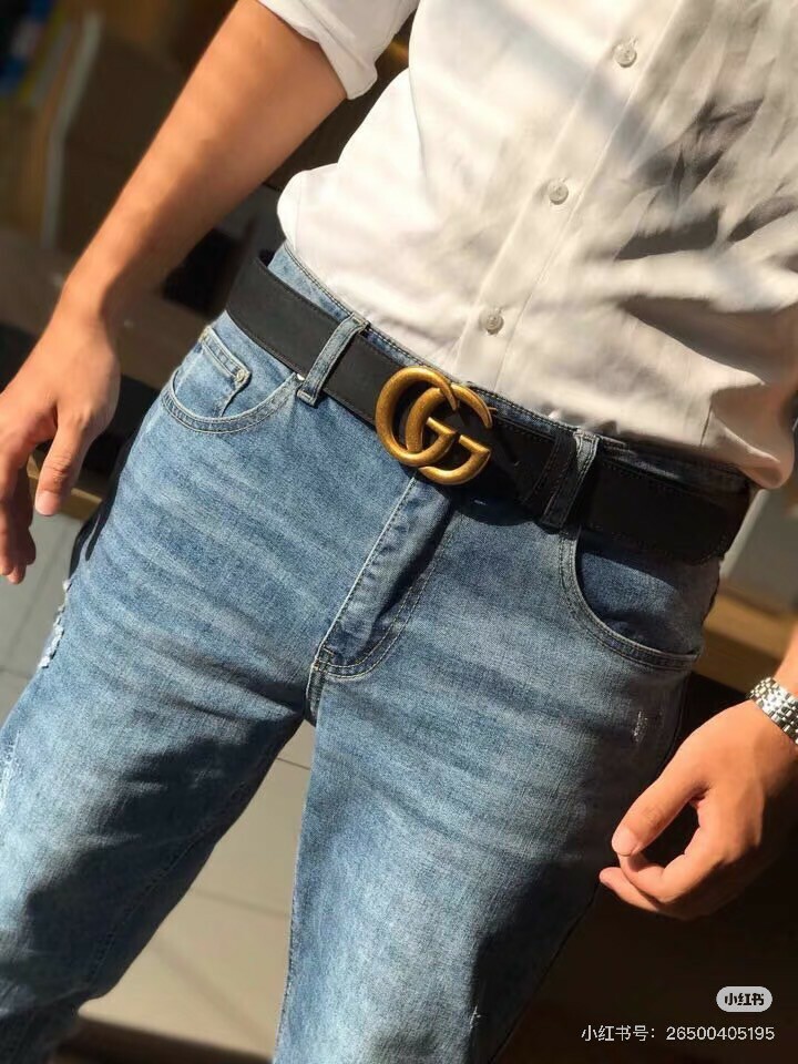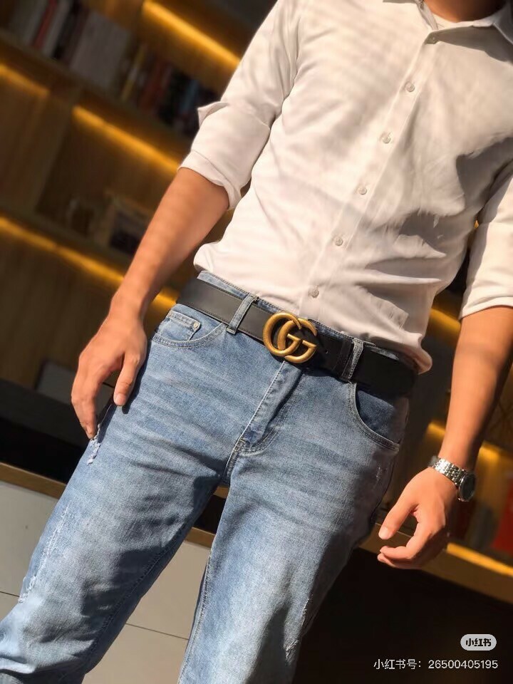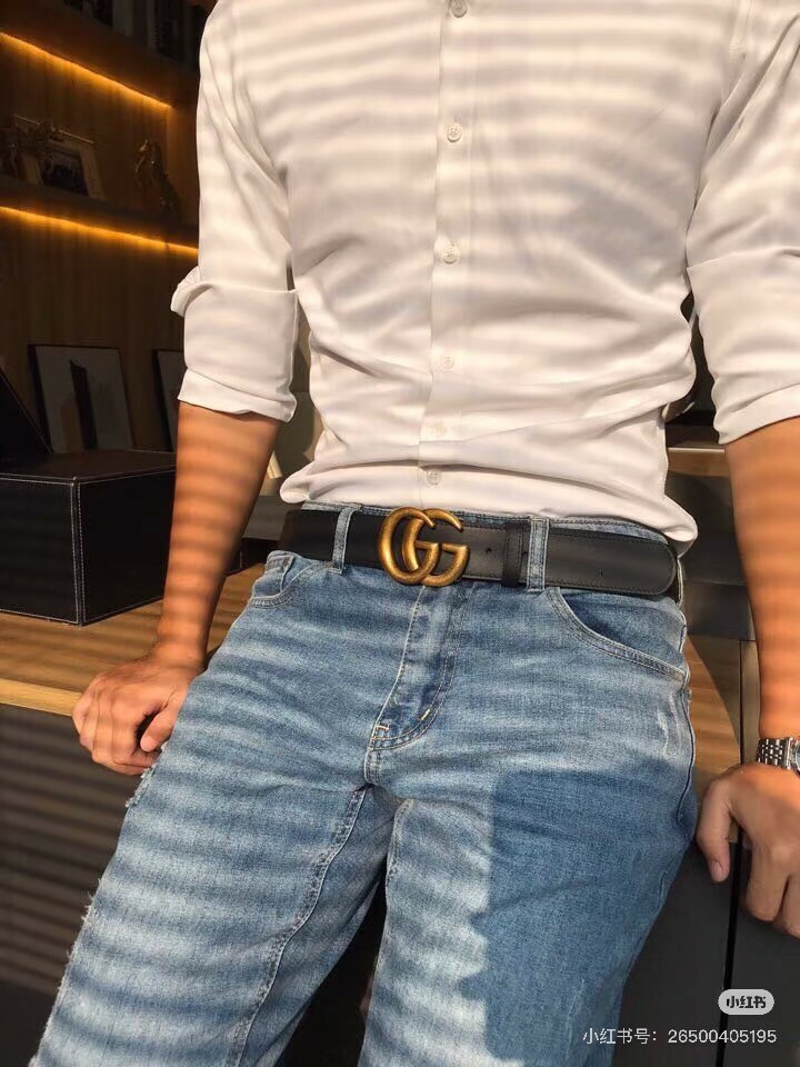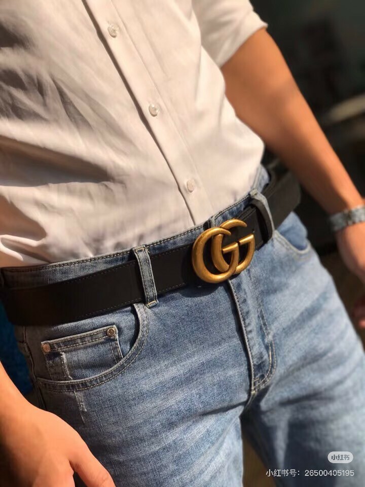 GUCCI|經典GG皮帶 寬4CM 黑金