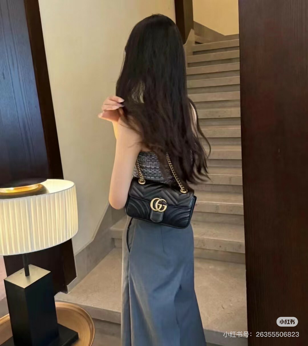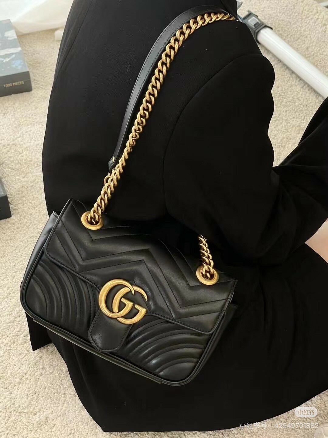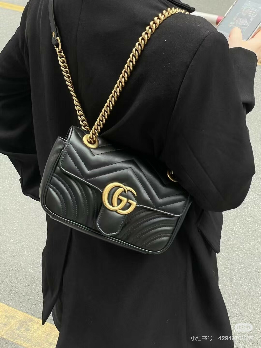 GUCCI|MARMONT 迷你鏈條包 22CM 黑色