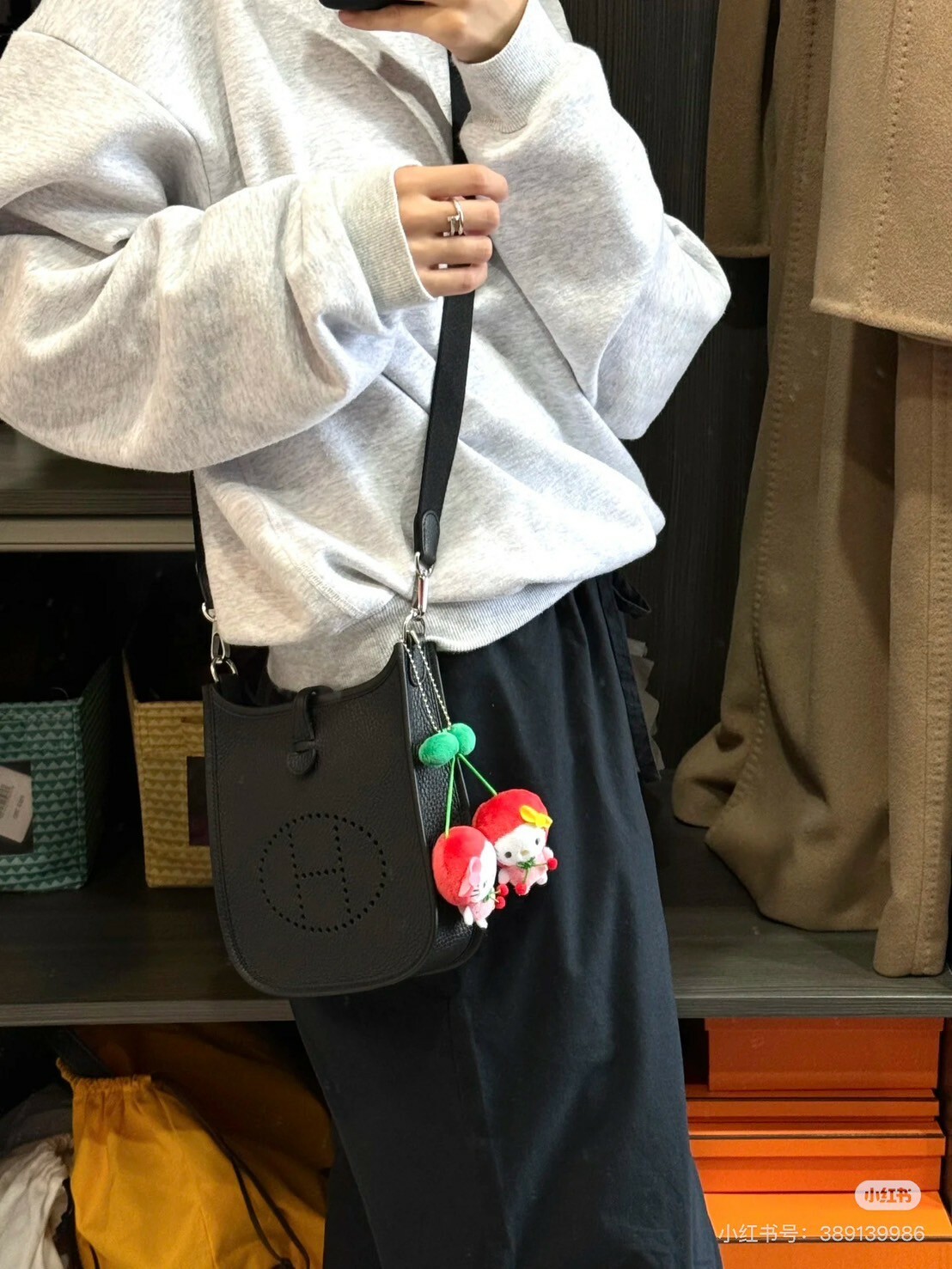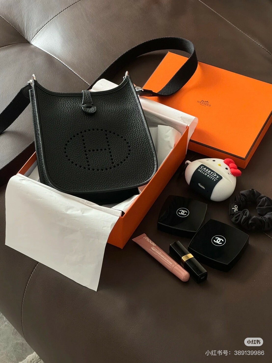 HERMES|MINI EVELYNE 黑色銀釦