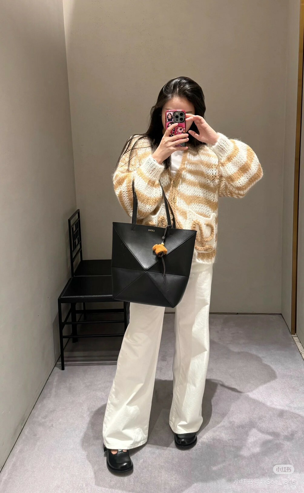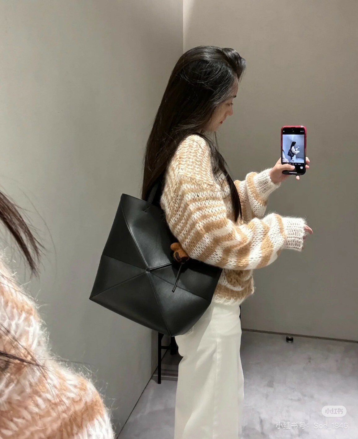 LOEWE|PUZZLE FOLE 中號托特包 黑色