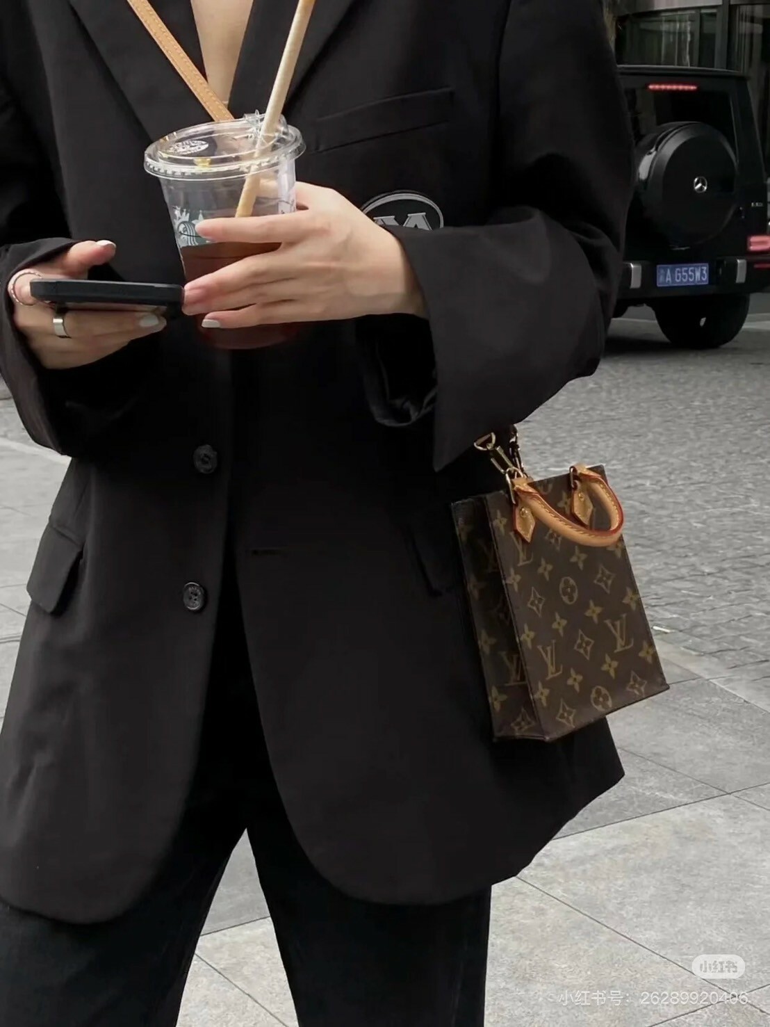 LV|PETIT SAC PLAT 托特包 棕色老花