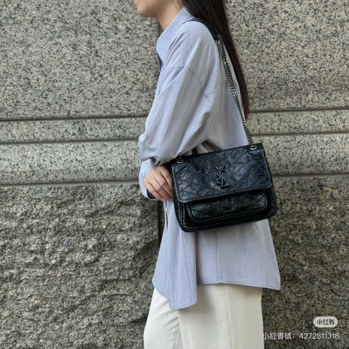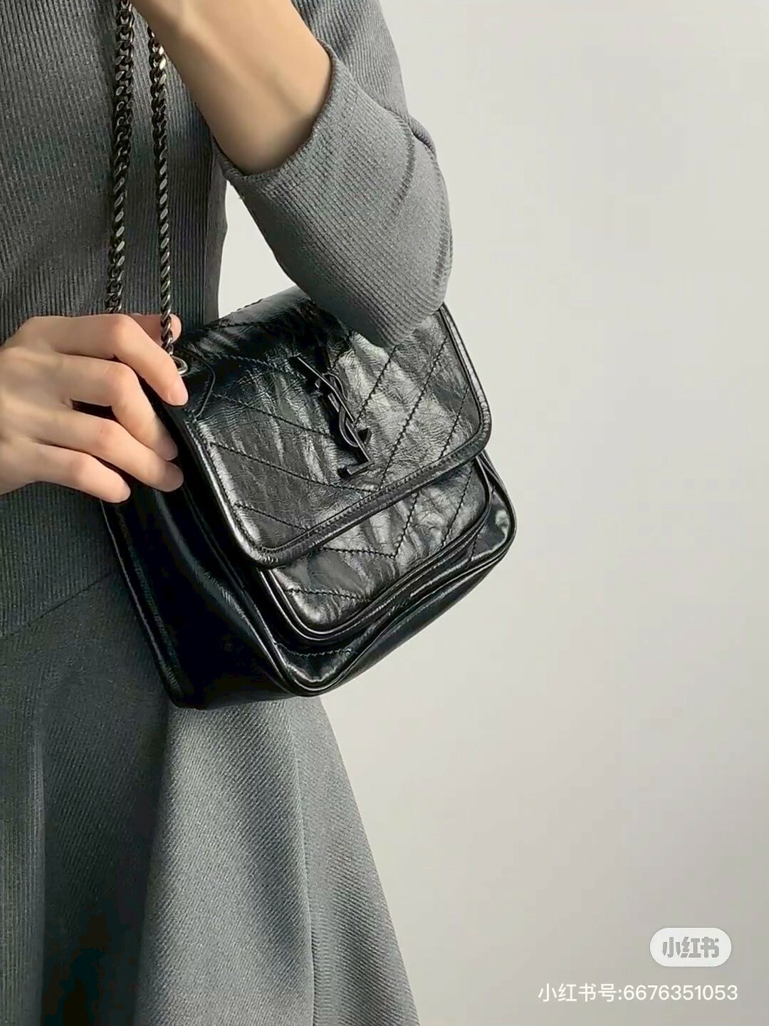 YSL|NIKI 皮革BABY鏈條包 黑銀