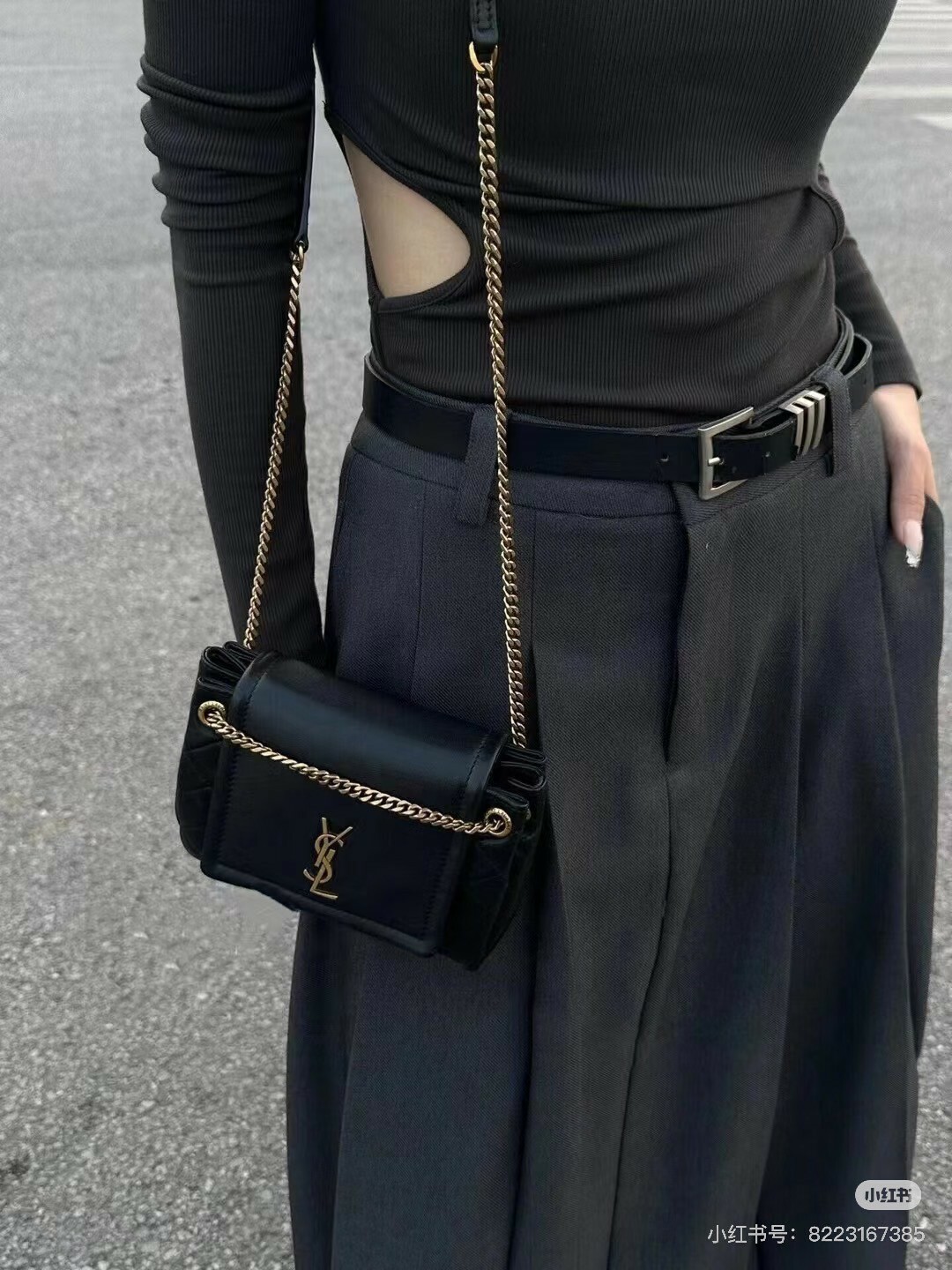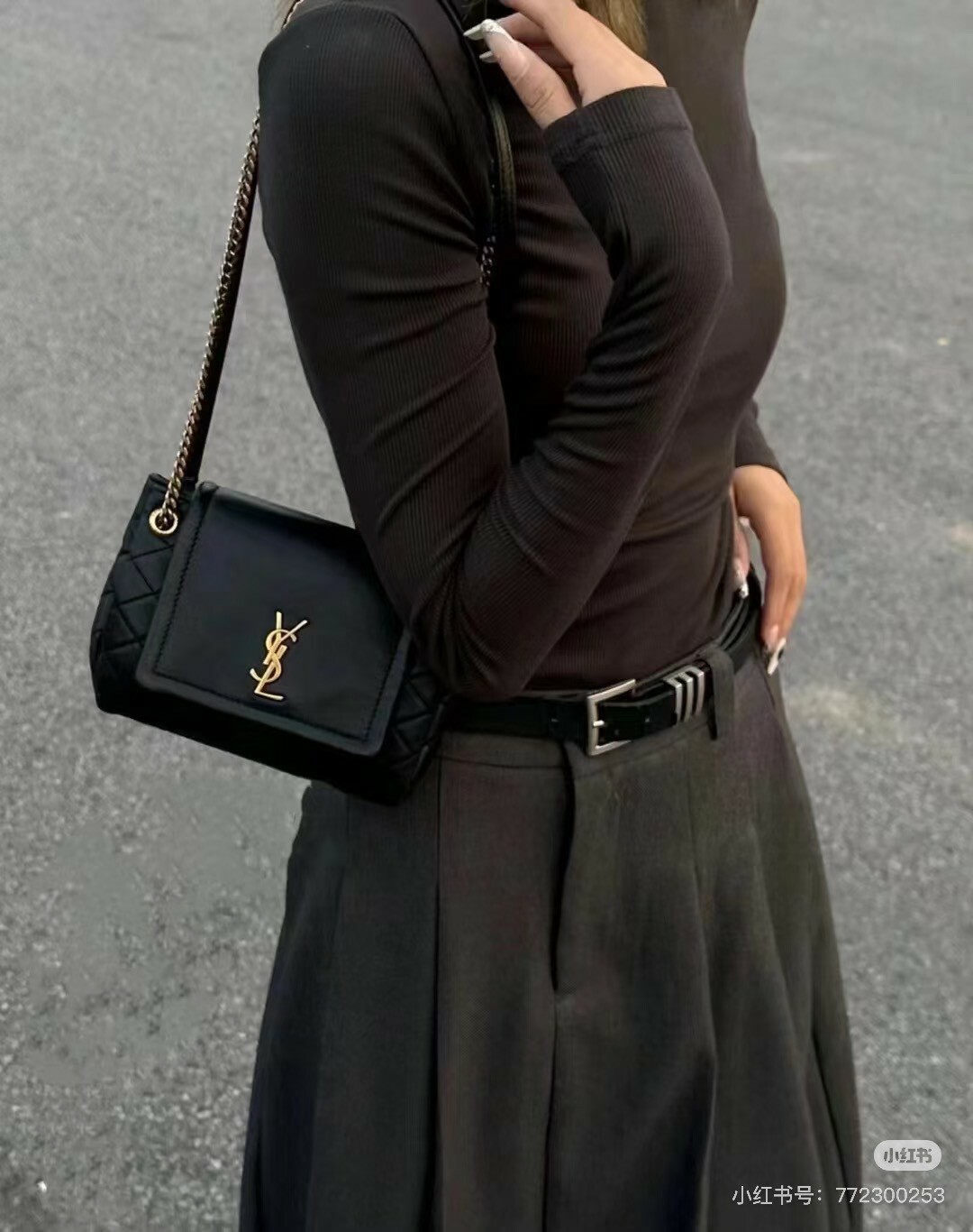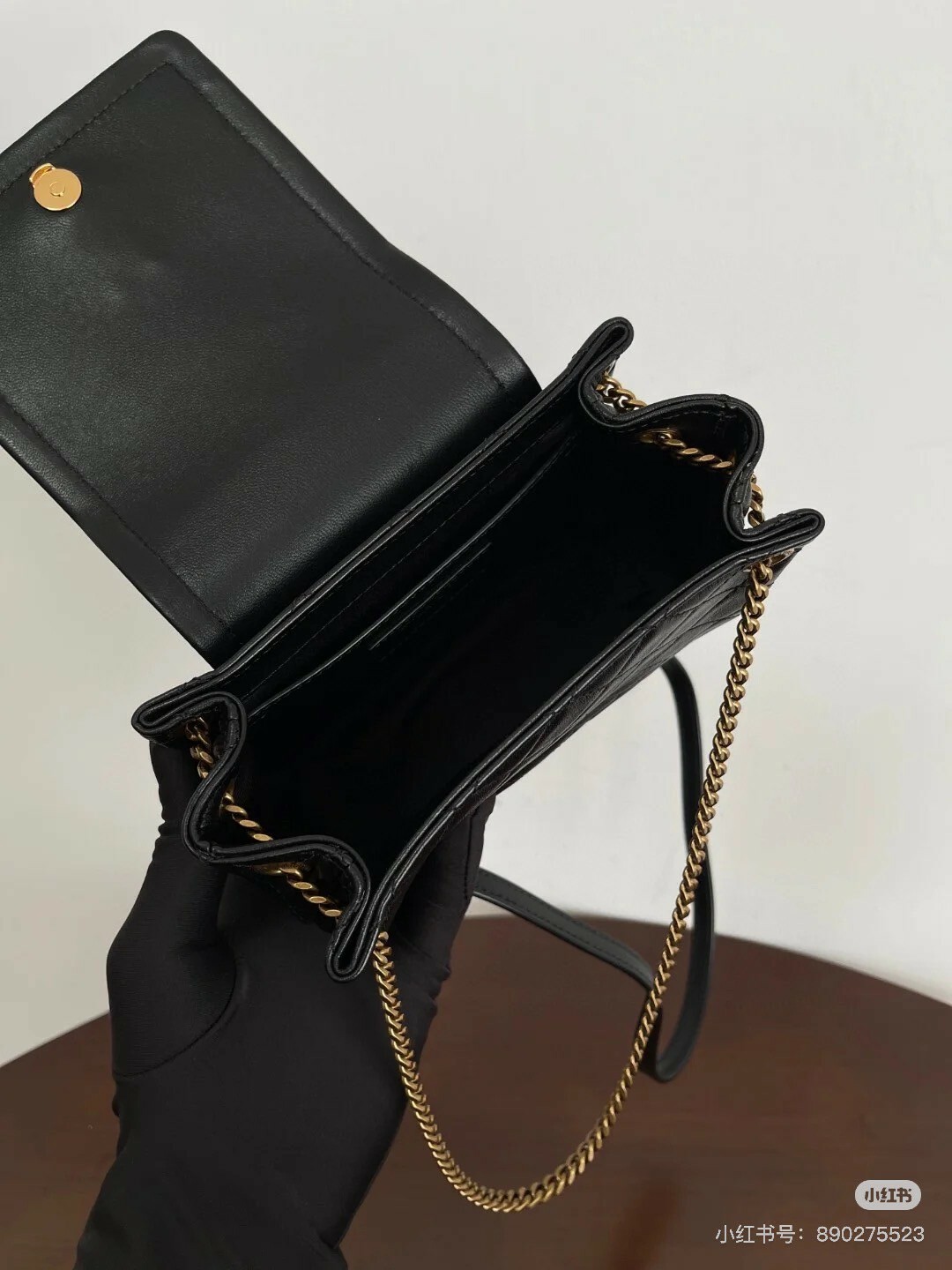 綴以菱形絎縫縫線 搭配鏈條及皮革肩帶