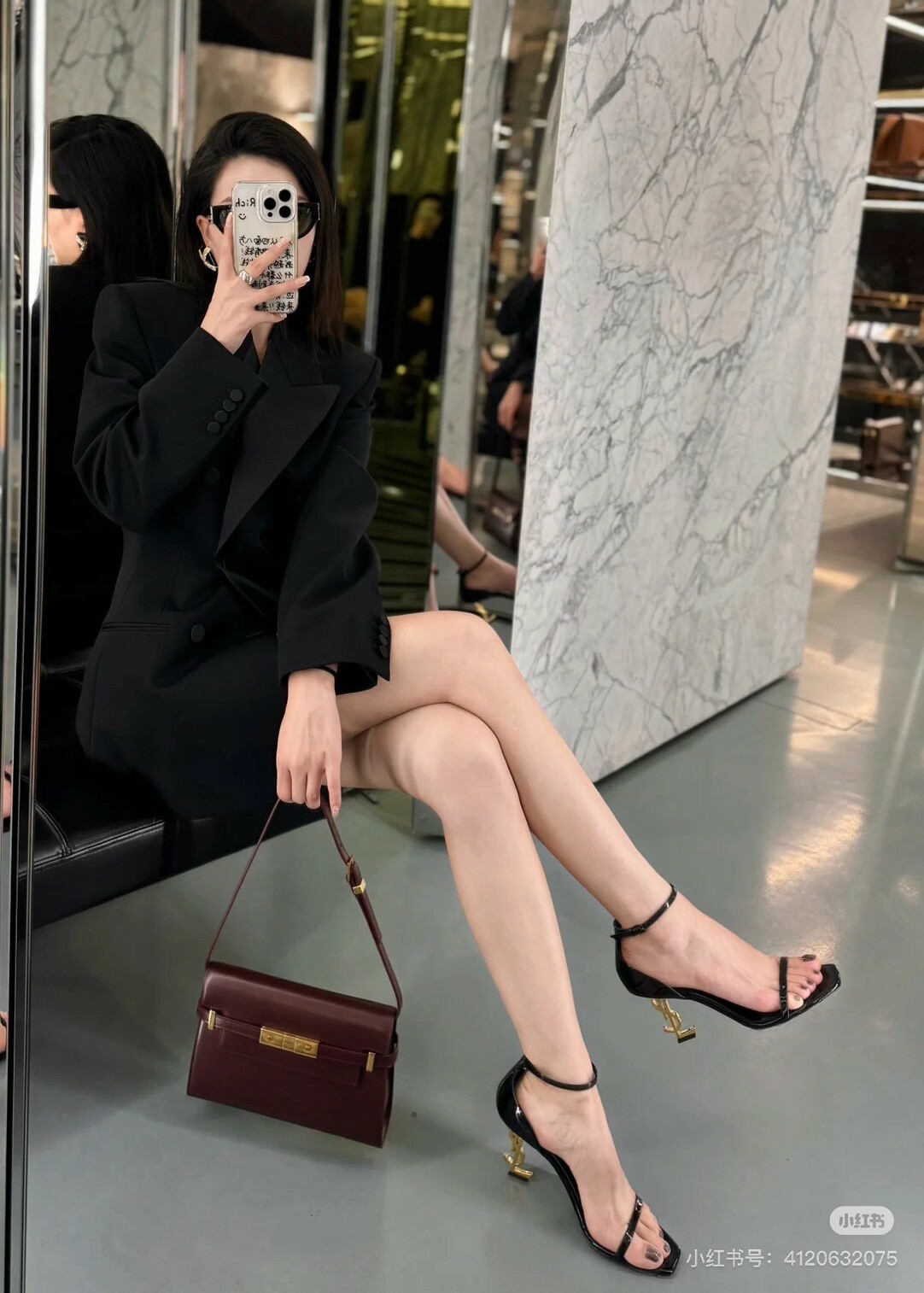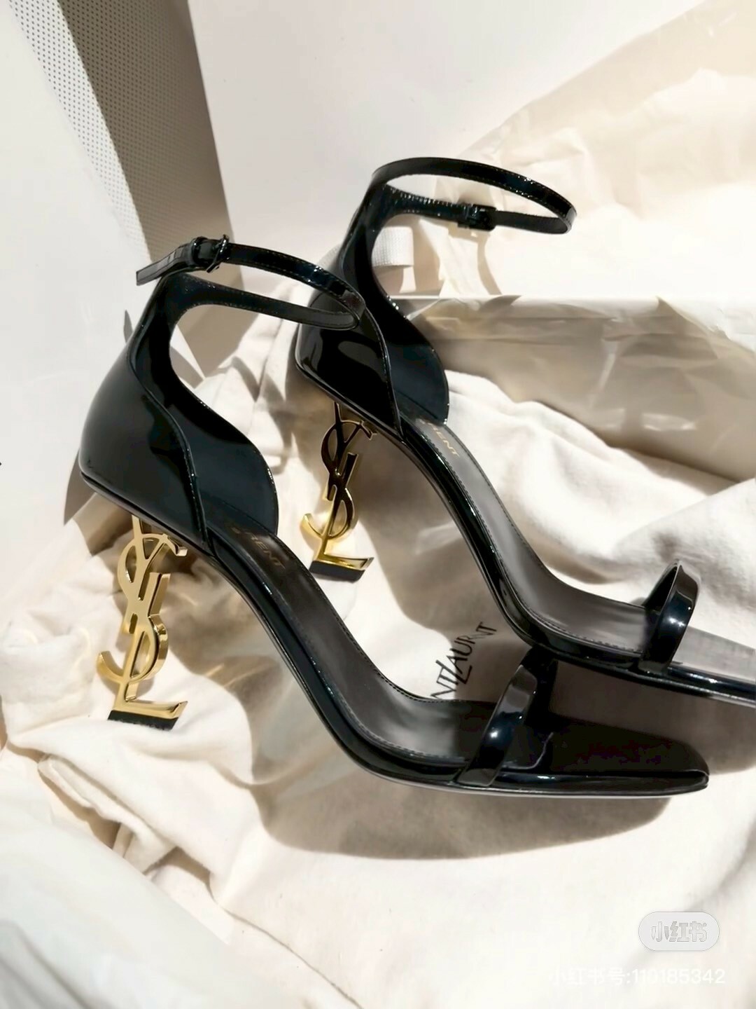 YSL|OPYUM漆皮LOGO標誌高跟鞋 黑金